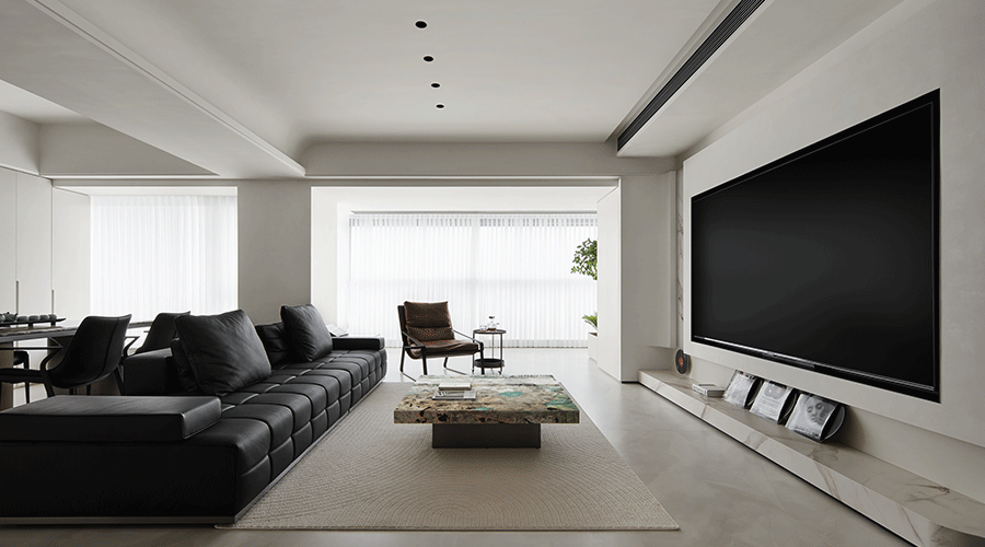 客廳別墅的核心區(qū)域,采用了開(kāi)放式布局,使空間更加通透。同時(shí),通過(guò)巧妙的電視背景隔斷設(shè)計(jì),將客廳劃分為出來(lái)。